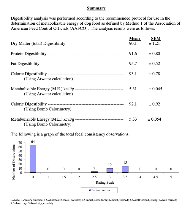 In a typical study, dogs are fed a controlled amount of a specific food over a set period. Researchers then compare nutrient intake to nutrient output (via stool analysis) to calculate how much protein, fat, energy, and other nutrients were absorbed. The result is broken out as Dry Matter, Protein, Fat and Caloric Digestibility and are expressed as a percentage.